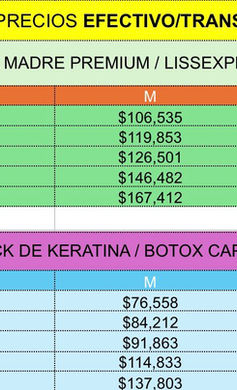 El precio de los servicios varía según el largo y la cantidad de cabello. Pueden aplicarse cargos extras, siempre consultar en persona la cotización para tu tipo de cabello en caso de presentar dudas. El precio final se confirma tras el diagnostico capilar en el salón. Hay servicios que se adicionan entre si, según la técnica a abordar. Los precios pueden estar sujetos a modificaciones sin previo aviso.